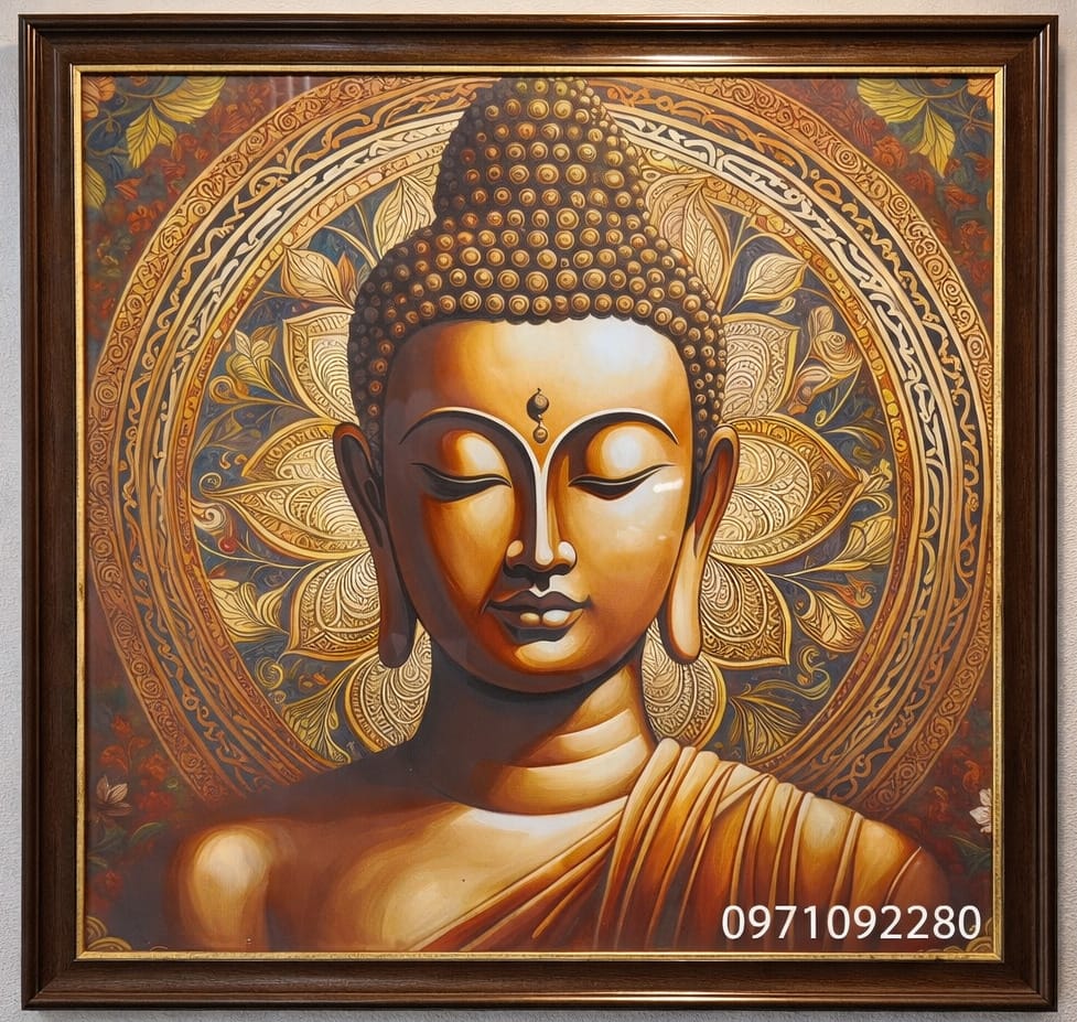 Treo bức tranh này trong nhà không chỉ giúp không gian thêm phần trang nhã mà còn mang lại cảm giác thư thái, giúp tâm hồn lắng dịu sau những bộn bề của cuộc sống. Đây là lựa chọn lý tưởng cho những ai yêu thích sự bình an, thiền định và vẻ đẹp sâu sắc của nghệ thuật Phật giáo.